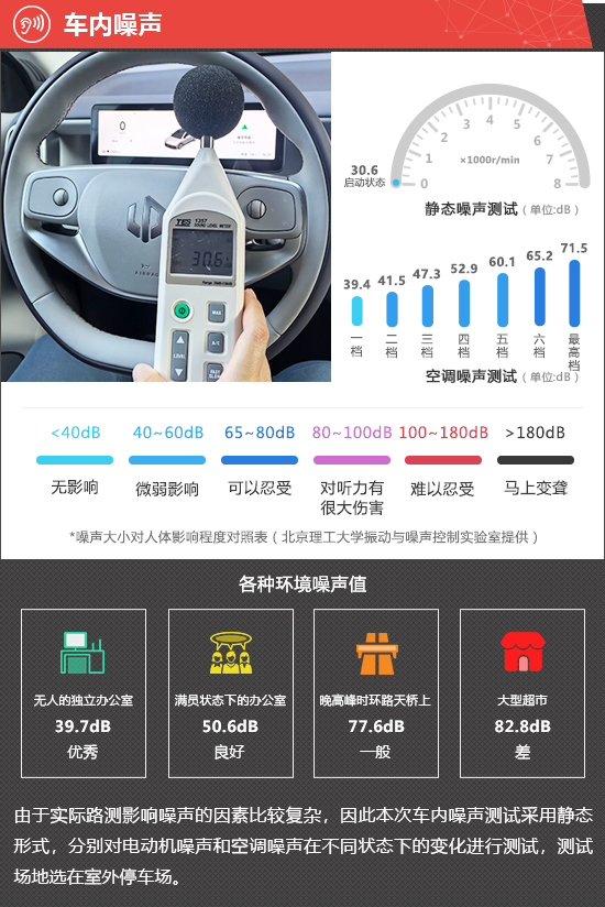 在静态噪声测试环节,2025款零跑B01在启动状态下车内实测噪声值为30.6dB,在测试过的同级别车型中处于上游水平。