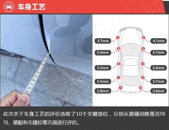 在车身工艺测试环节,整车共选取10个关键部位,每个关键部位都会选取3个关键点进行测量,以评价各关键部位缝隙的均匀程度。从测试结果来看,2025款零跑B01全车绝大多数部位的缝隙均值控制在4mm以内。不过,个别部位左右两侧缝隙均值相差较大,对测试成绩造成一定影响。